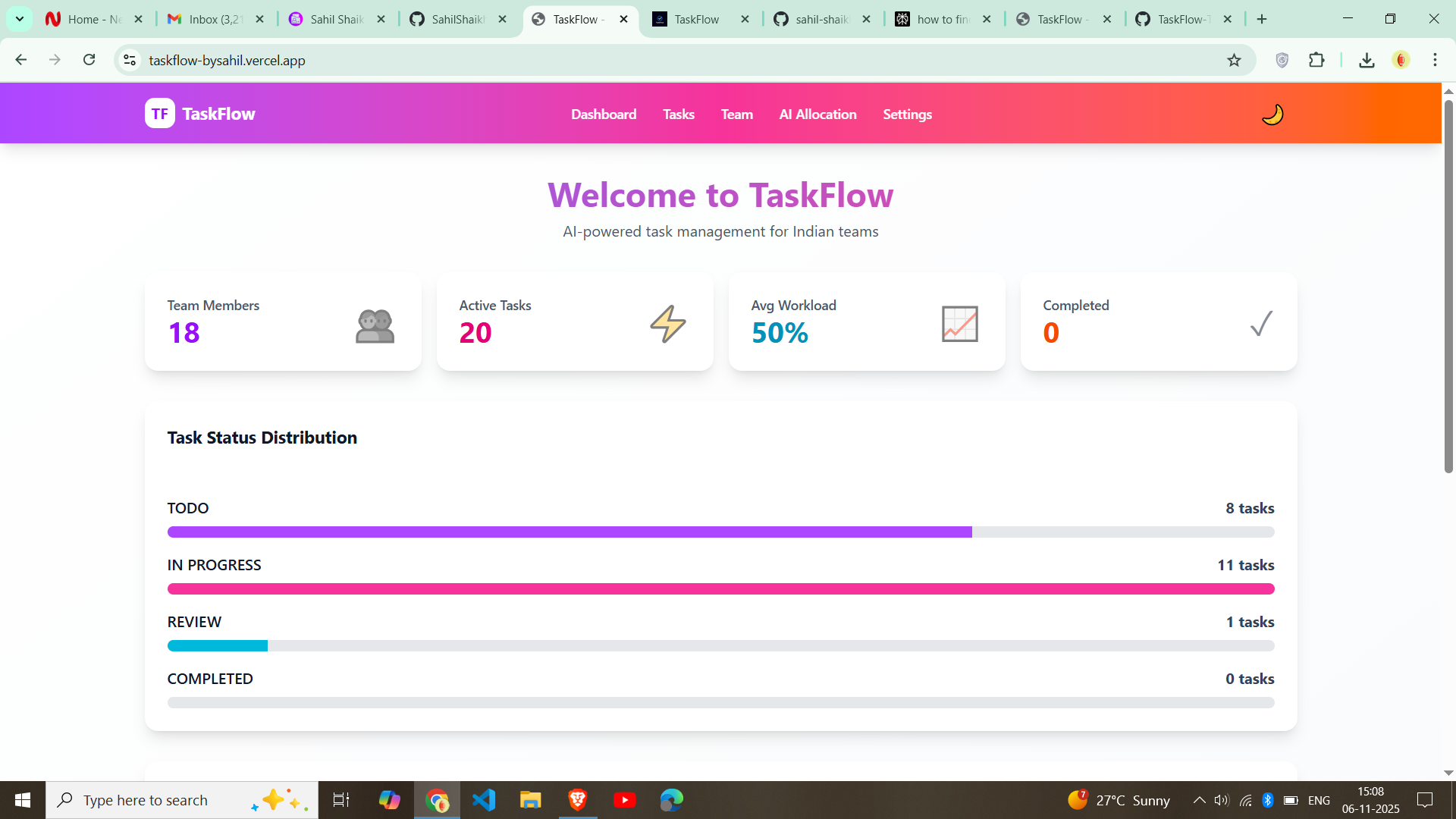 TaskFlow is a sleek, fully functional task management platform that streamlines marketing & Developer team operations with an intuitive dark interface, real-time workload visualization, advanced skill mapping, and robust collaboration tools. Powered by built-in AI for automated local task allocation, it brings together tasks, teams, and analytics, ensuring seamless workflow and maximum productivity from planning to execution.