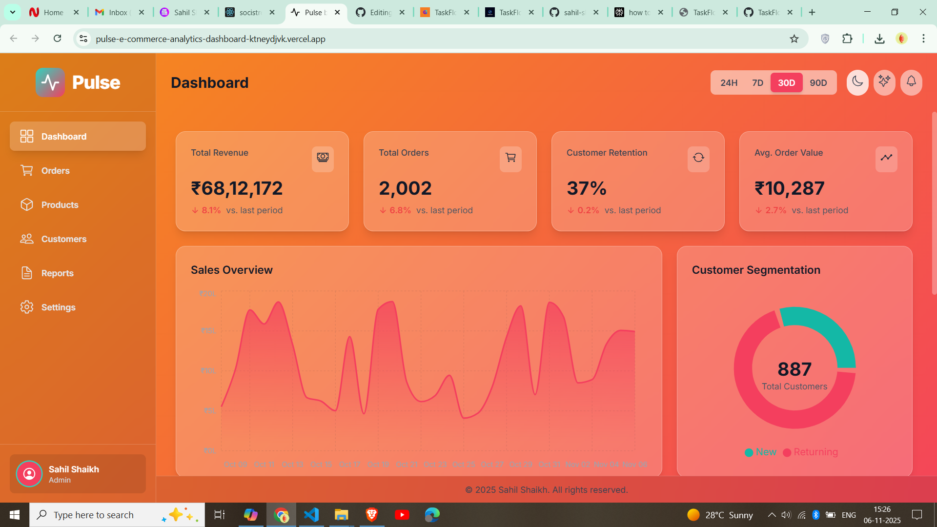 Comprehensive analytics platform for e-commerce businesses with real-time sales tracking, customer behavior analysis, inventory management, and predictive sales forecasting using machine learning.